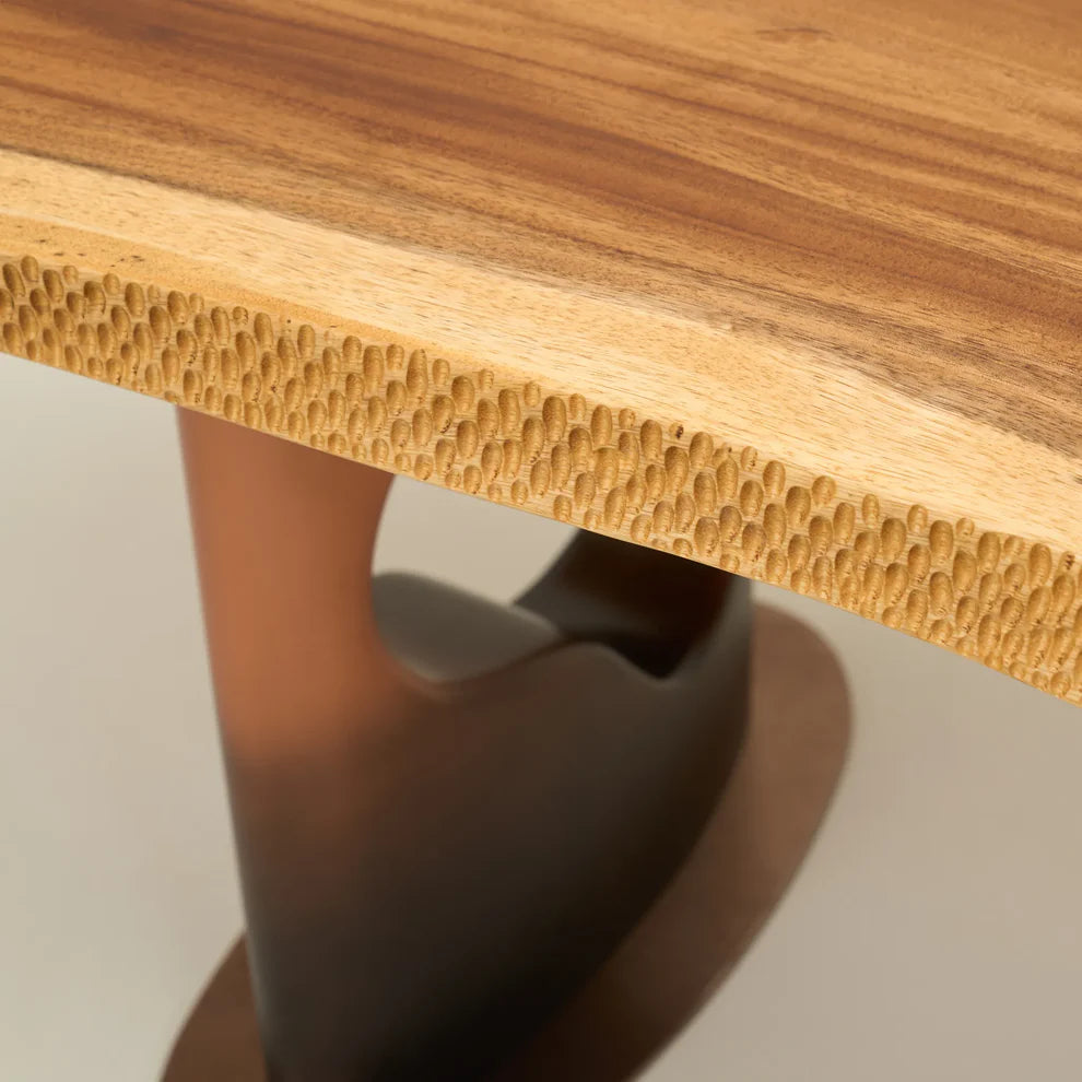 In the jungle, every sound carries a sense of mystery, and the air buzzes with the presence of unseen life. Inspired by the untamed beauty of Nanyuki, Kenya, the Nanyuki Dining table captures the raw textures and warmth of this vibrant landscape. Its design reflects the rugged bark of ancient Baobab trees, inviting the essence of the wild into your home. With earthy tones and organic forms, this table creates a luxurious connection to nature, offering comfort while paying homage to the exquisite terrain that inspired its name.