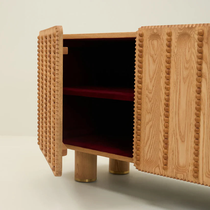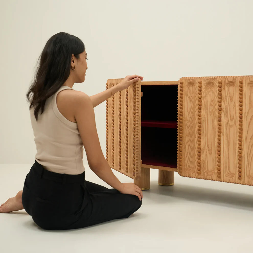 The Marrakesh Console is a love letter to the romance of Moroccan craft a piece that embodies the textured tales and rich colors of Marrakesh. Inspired by the intricate jali screens and the earthy toned walls of its palaces, this solid wood console feels alive with the energy of bustling souks and the stillness of terracotta courtyards. A plush burgundy velvet interior adds a hidden richness, while delicate brass accents glimmer like a sun-kissed memory of the desert. With soft-close shutters and deep, inviting hues, this console isn’t just furniture; it’s a piece of Marrakesh’s soul, a timeless slice of tradition in your home.