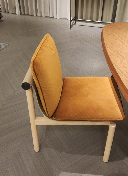 Imagine sinking into a seat that radiates warmth and lets you relax in luxurious comfort. The "Soft Saffron" isn't just a chair; it's an embrace. Its plush, saffron-toned upholstery creates a vibrant yet inviting atmosphere, while the gently curved back and supportive armrests promise unparalleled comfort. The light-toned wooden frame adds a touch of natural elegance to its modern design.