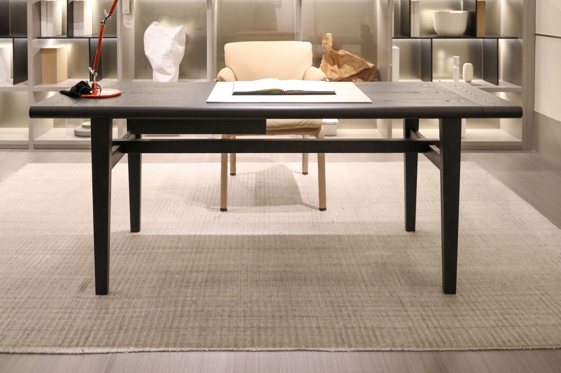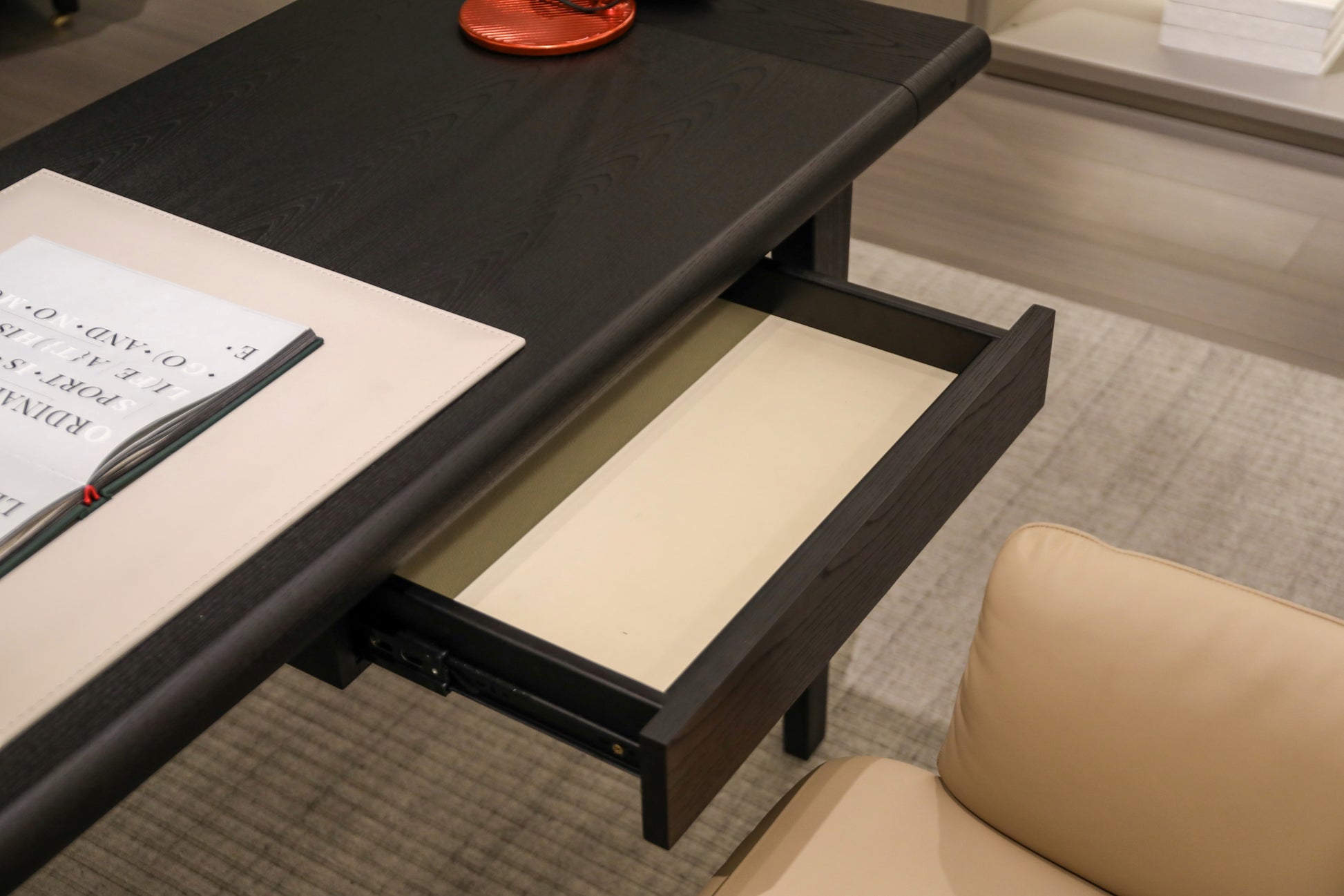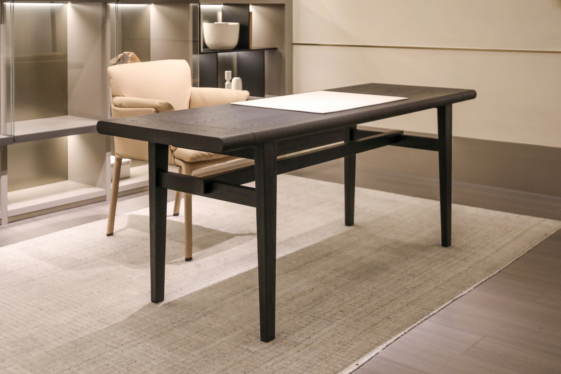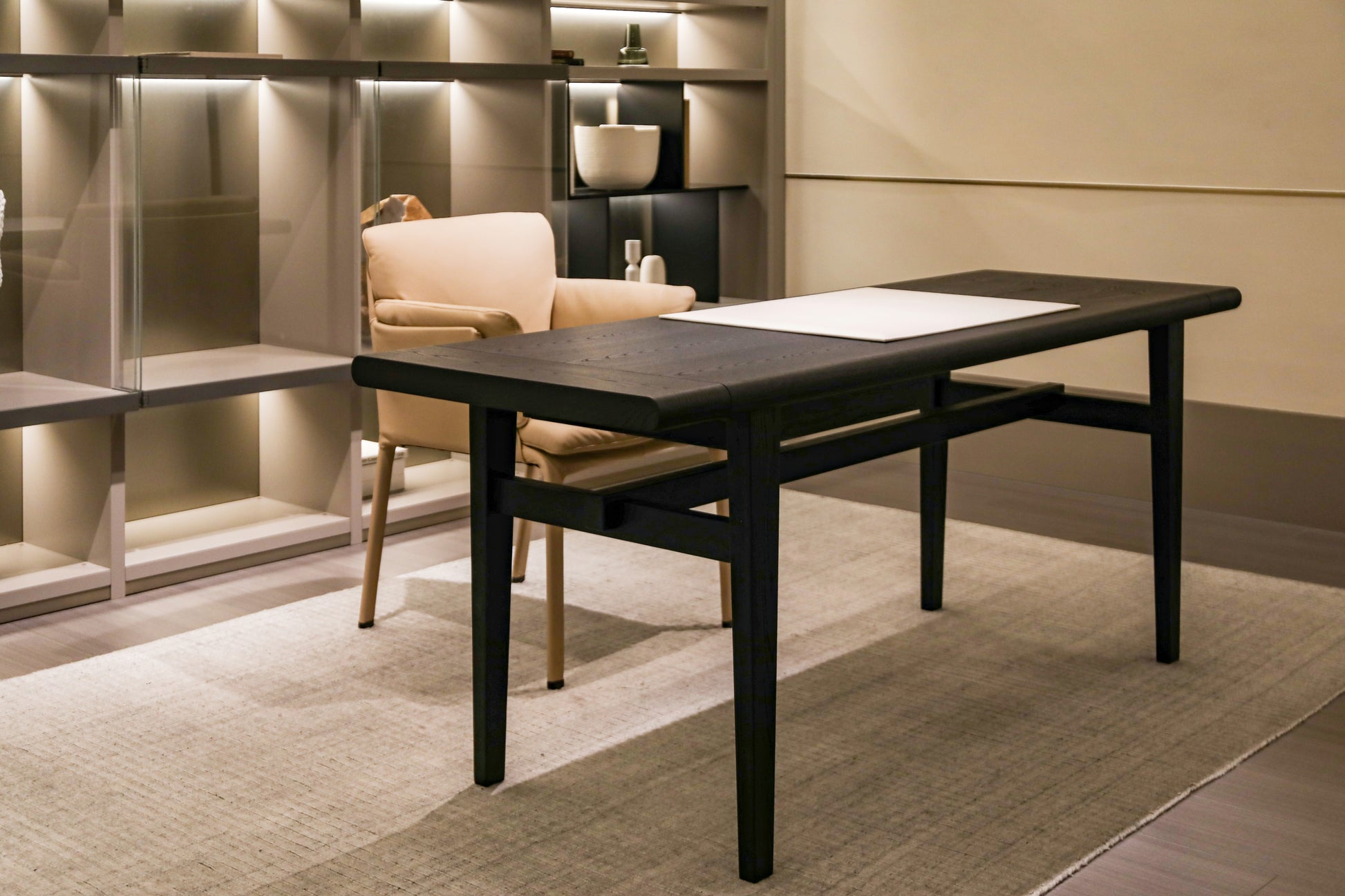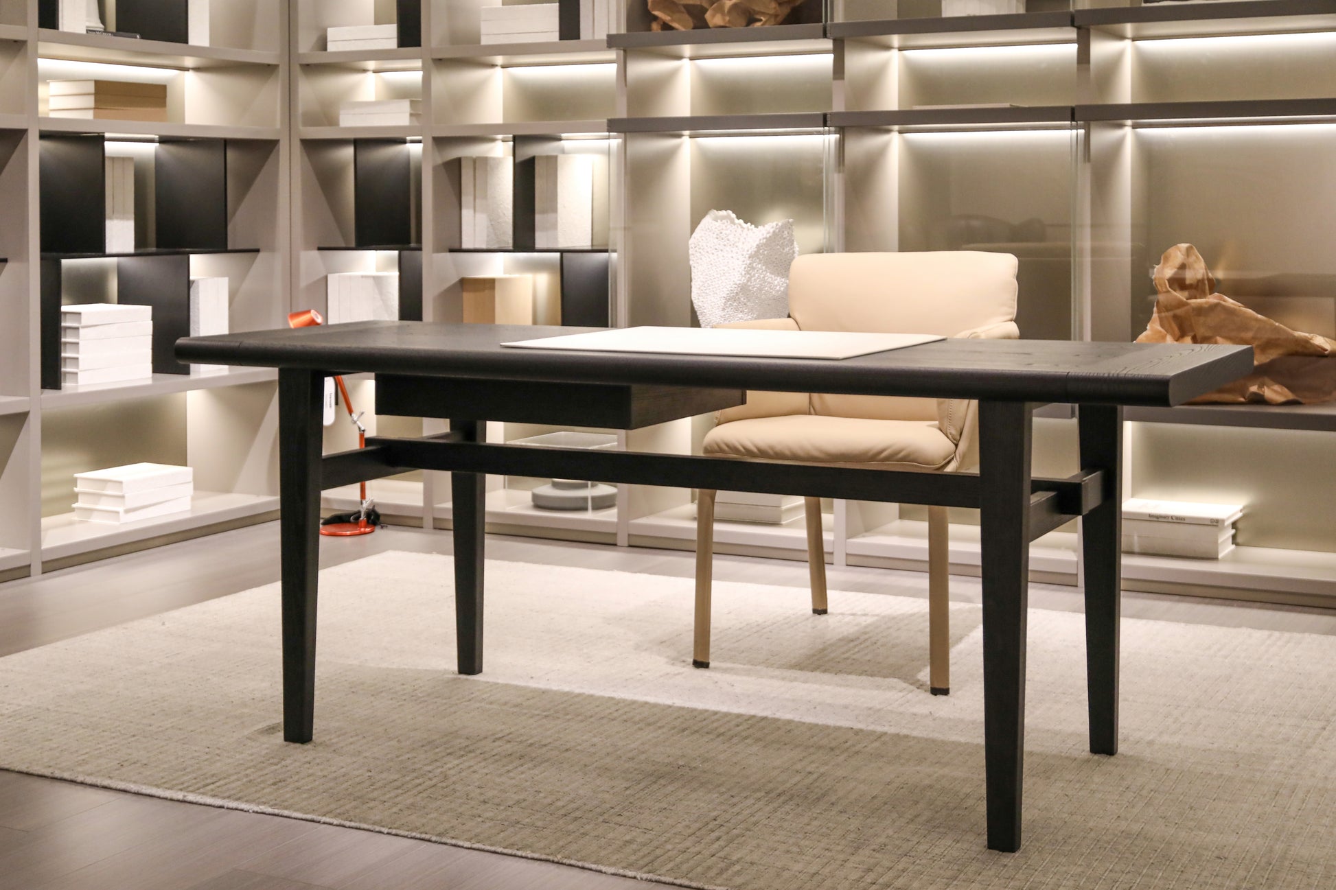 Elevate the executive domain with "Shadow Scribe Legacy," a desk meticulously crafted for the discerning professional. Its commanding presence and refined lines offer an unparalleled foundation for strategic thought, transforming any home office into a bastion of productivity and prestige. Invest in "Shadow Scribe Legacy" to imbue your space with timeless elegance and underscore a profound commitment to enduring quality and sophisticated functionality.