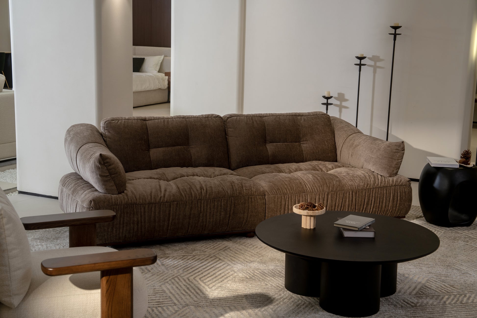 Introducing the "Velvet Channel Sofa", a masterpiece of refined elegance designed to elevate any discerning space. This exquisite sofa, upholstered in sumptuous velvet, invites you to indulge in unparalleled comfort and sophisticated style. The distinctive channel detailing adds a touch of modern luxury, creating a captivating focal point that exudes both opulence and inviting charm. The "Velvet Channel Sofa" is more than just furniture; it's a statement of discerning taste, promising to transform any room into a haven of sophisticated lounging.